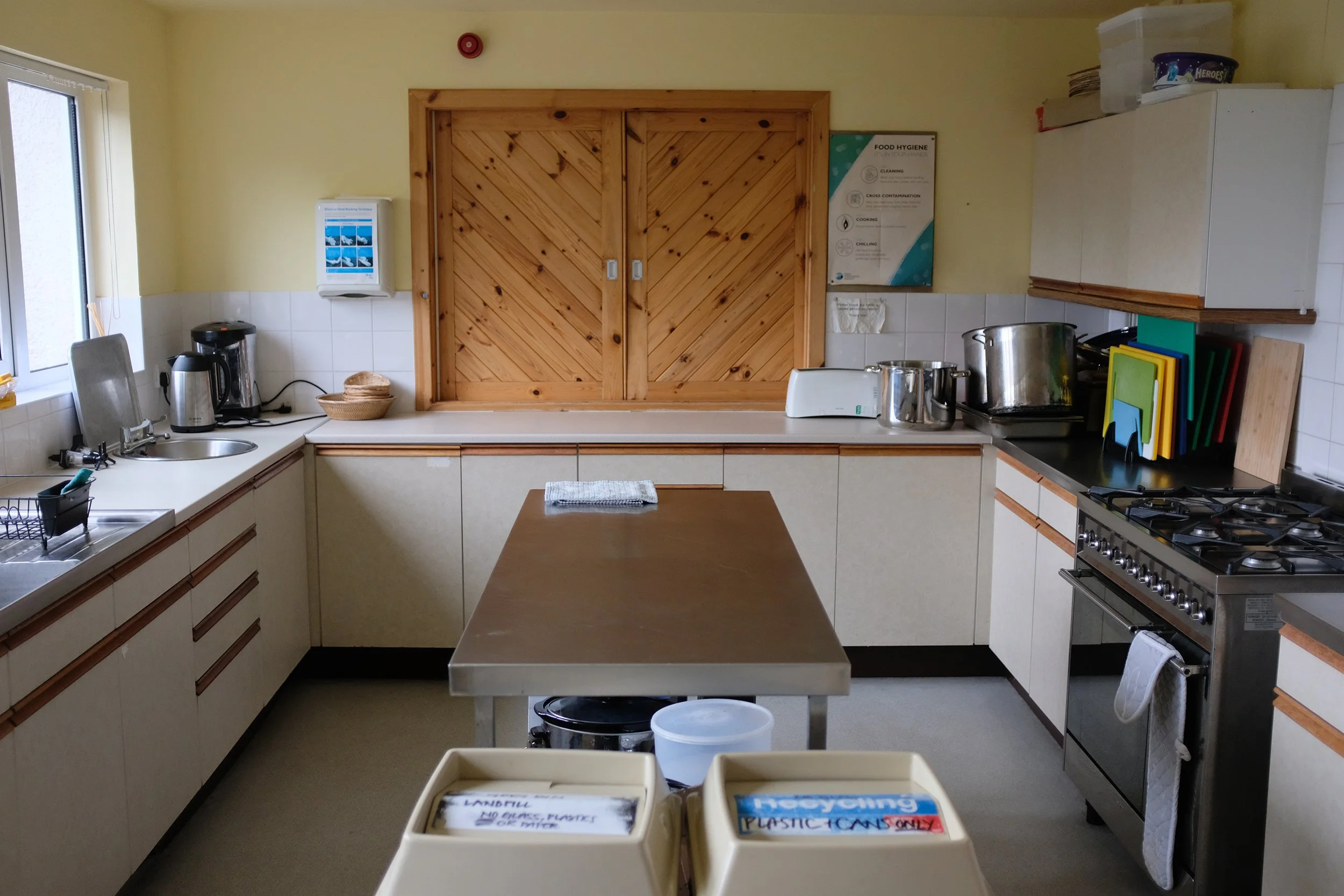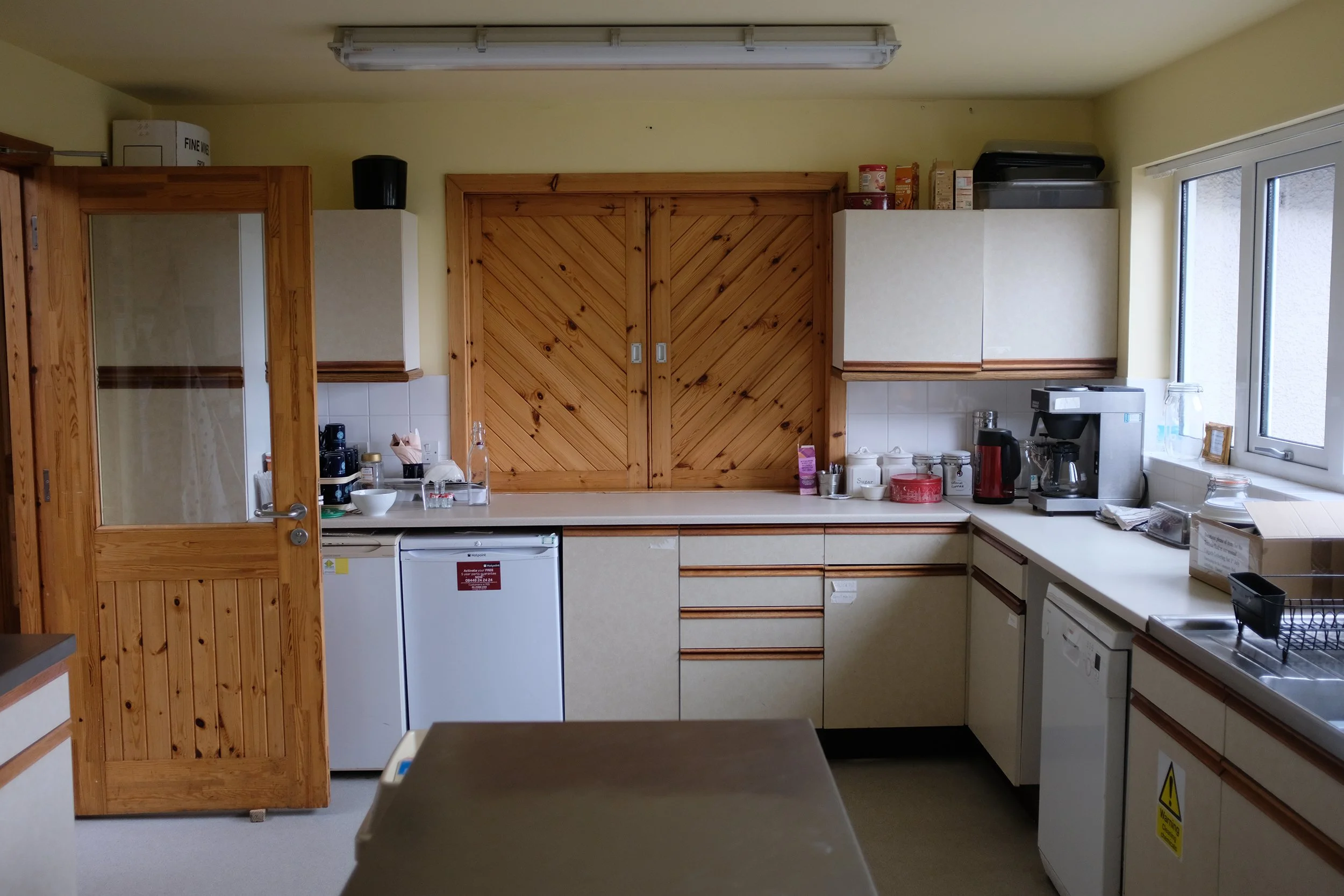 The well equipped kitchen services both the main hall and the lounge area via serving hatches at either end. It is very much at the heart of the hall complex and acts as a focal point for many informal gatherings and conversations. The kitchen is equipped with a large gas cooker, dish washer and two fridges. It has crockery and cutlery for 120 place settings.